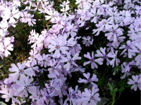 Флокс шиловидный: высота растения около 17 см. Образует вечнозеленые плотные коврики. Лежачие стебли с очень короткими междоузлиями сплошь покрыты сидящими мелкими, узкими, острыми и жесткими листьями до 2 см длиной. Стебли заканчиваются цветоносами, несущими один — два цветка каждый. Цветки диаметром около 25 мм, розовой, белой, пурпурной, лиловой окраски. Цветет с середины мая до конца первой декады июня, вторично и менее обильно в августе — сентябре.