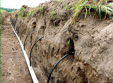 Это система гибких перфорированных труб, равномерно разведенных по всему участку. Трубы подключаются к источнику водозабора, после чего вода начинает равномерно, без напора, поступать к растениям через перфорацию в трубах. Минусом данного вида является его внешний вид, поэтому такой вариант применяют для полива деревьев, кустов и клумб. Трубы закрываются мульчирующим материалом, мраморной крошкой, почвопокровными растениями.
