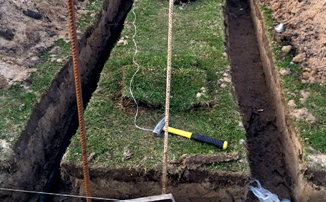 - разметка участка и рытье траншей;