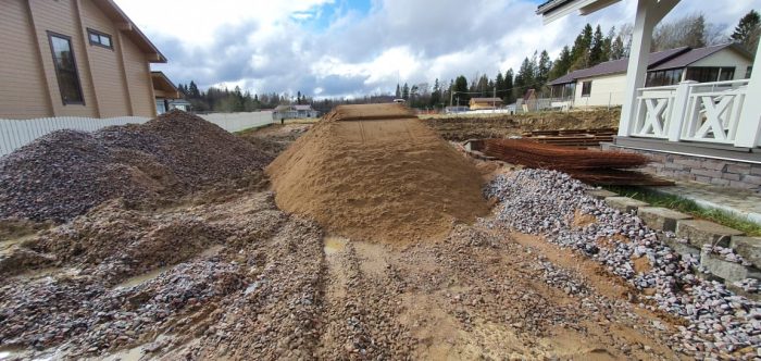 Результатом перемещения земляных масс по участку является черновая планировка участка с вычетом высоты конструктивных разрезов покрытий чистовой поверхности участка. Планировку лучше всего проводить песком, в крайних случаях проводится обратным грунтом с участка. Глиной проводить планировку крайне не рекомендуем. Большинство инженерных коммуникаций прокладывается при черновой планировке участка.